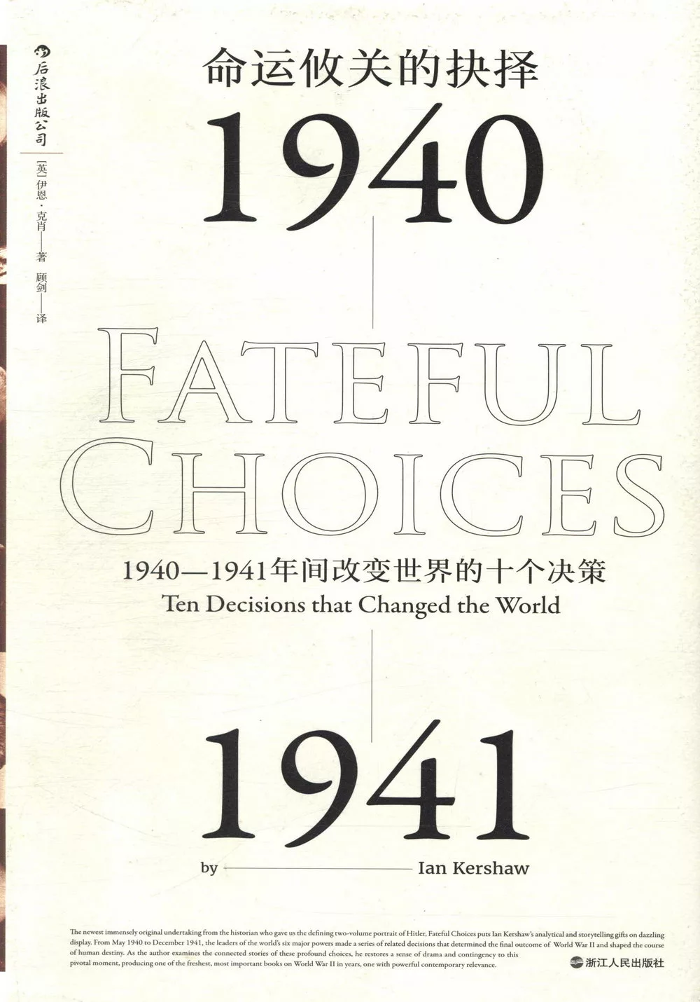 伊恩.克肖(Ian Kershaw)是世界知名的20世紀德國史學家,英國社會科學院院士,皇家歷史學會會員,在希特勒研究方面頗有建樹。他畢業於利物浦大學和牛津大學,獲得牛津大學博士學位:曾執教於曼徹斯特大學、聯邦德國波鴻魯爾大學、諾丁漢大學:從1989年起擔任謝菲爾德大學的現代史教授,直至退休。主要著作有《希特勒迷思》、兩卷本《希特勒傳》與《命運攸關的抉擇:1940—1941年間改變世界的十個決策》。2002年,他因為在歷史學方面的貢獻被封為爵士。