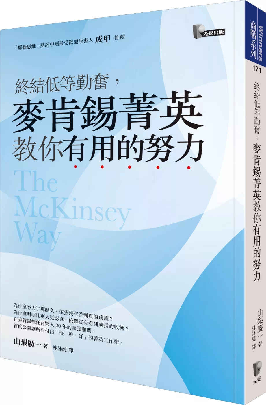 本書是作者在麥肯錫學會的迷你思考法,從擬定高精密度的「假設」開始,到建立描繪工作全貌的「整體設計」,乃至保持「五感」的靈敏度,將龐雜的資訊去蕪存菁,step by step地教你如何運用「迷你思考」,同時提升工作的「速度」和「品質」。